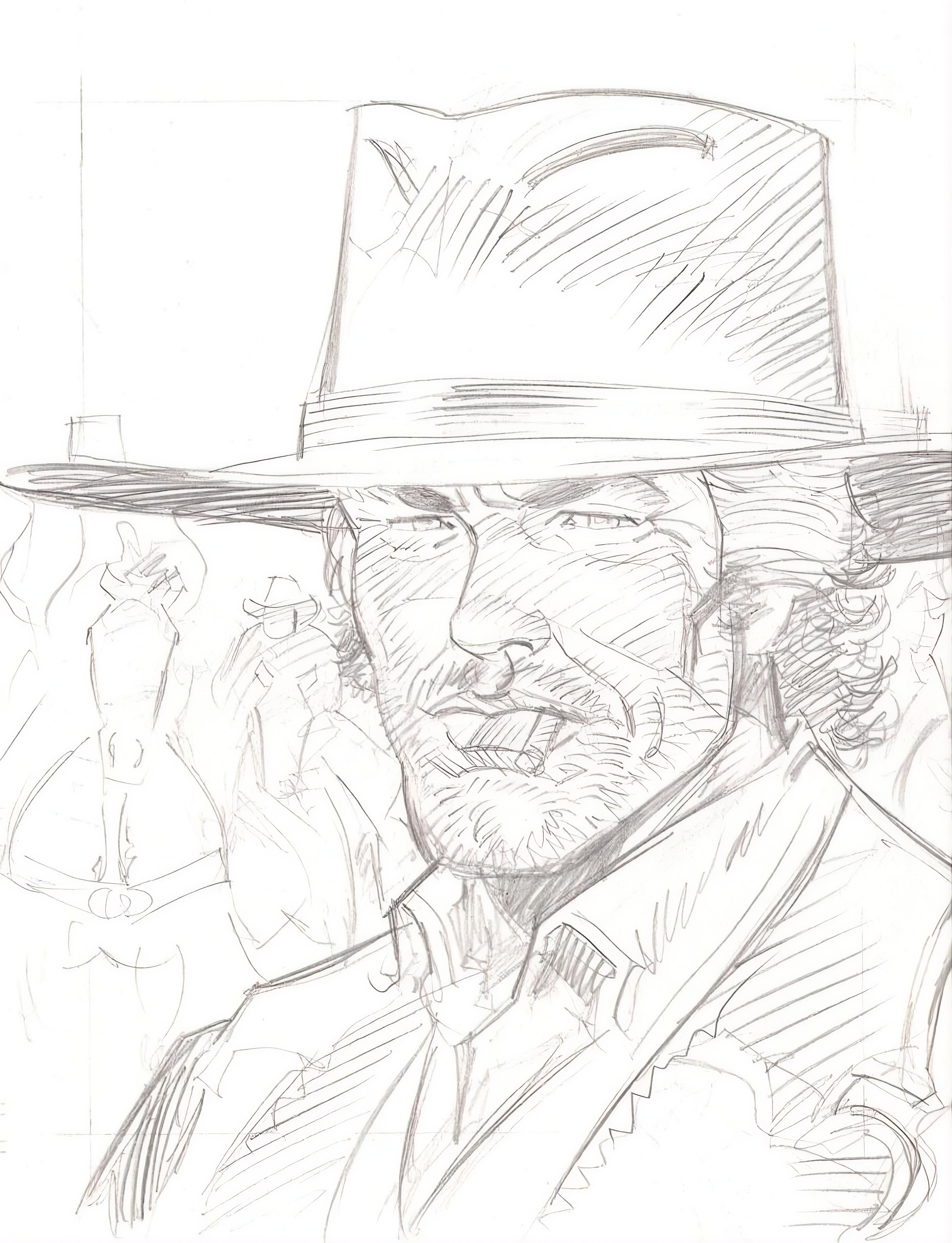 Illustration originale de DURANGO pour le festival BD Lexy 2020 par Thierry GIROD. Vendue avec son crayonné. Technique mixte : Crayon, encre de Chine, aquarelle et gouache sur papier. Signée.