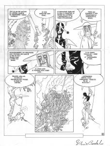 Planche originale 40 de la Saga d'Alandor, Tome 1 le dieu jaloux avec sa mise en couleur. (Mise en couleur format A4) Sur un scénario de Jodorowsky, La Saga d'Alandor est un chef de SF de Silvio Cadelo. Planche : Encre de Chine sur calque . Mise en couleur : aquarelle . signées.