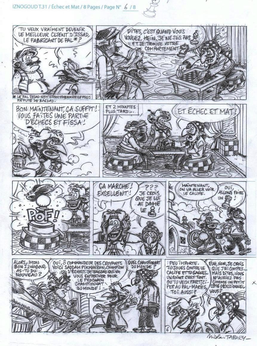 Planche originale 6 + crayonnée du tome 31 de la série IZNOGOUD - Moi, calife... par Nicolas TABARY. Encre de Chine sur papier. Signée.